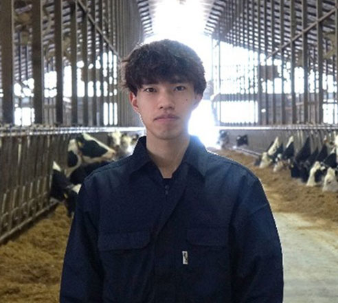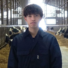 仕事で大切にしているのは、牛にできるだけストレスを与えないことです。 ロボット搾乳に長く入ってもらえるよう工夫したり、待機時間を短くするための動線を考えたり、日々試行錯誤しながら業務に取り組んでいます。牛群管理がメインですが、他にも子牛に哺乳したり、繁殖の作業をしたりなど様々な経験させてもらっています。職場の雰囲気はとても良く、上司や派遣のインドネシア人スタッフも気さくに話しかけてくれるので、楽しく仕事ができています。 今後は、さらに経験を積み、知識と技術を高めていきたいです。